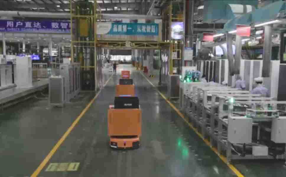 为车载冰箱物流配送打造的智能解决方案,,包含产中物流通过潜伏举升AMR搬运至线边,,,,产后成品物流智能仓储,,,流程包含产中物流智能齐套入库,,,线边安灯叫料AMR智能配送至线边,,,成品入库、、、出库,,,,通过无人堆高车机器人,,,,智能仓储管理替代人工作业管理,,,实现更高存储、、、更高效率、、、、更具柔性化的解决方案。。。